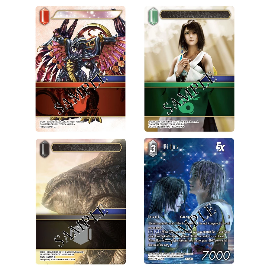 This set includes a total of 100 cards between the [preconstructed] deck and additional cards for customization with 30 cards being Starter exclusives (10 types, 3 cards each). Among the Starter cards, one Tidus [16-139S] card is a full art premium card.