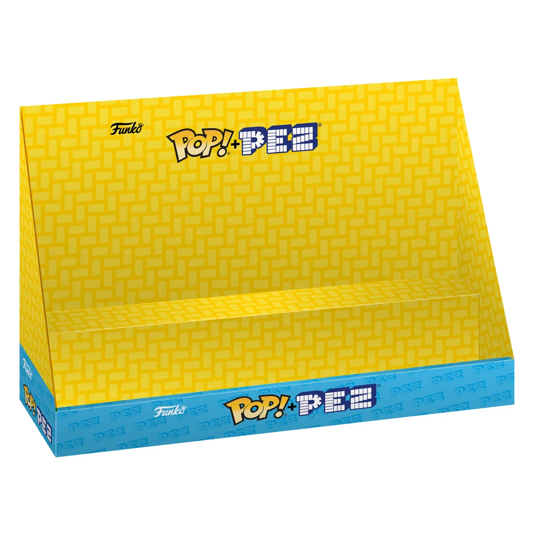 Funko Pop! + Pez Display Case for 12 Funko Pop! + Pez products. This cardboard stand is assembled for your convenience.