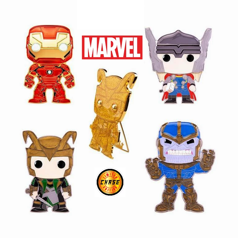 Funko Pop! Pin Marvel Set of 5 including a Chase Loki Pin .